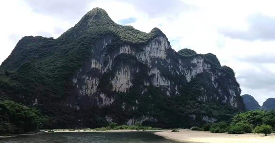 第一天上午,我們乘游輪游覽風(fēng)景秀麗的漓江。漓江的水像一條綠色的絲帶,蜿蜒在萬(wàn)峰之間,兩岸山峰巍峨聳立,倒映在碧波中,讓人感覺(jué)像是走進(jìn)了一幅連綿不斷的畫(huà)卷,此刻真正體會(huì )到唐代詩(shī)人韓愈描繪的“江作青羅帶,山如碧玉簪”的漓江風(fēng)光。