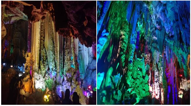 從游輪下來(lái),我們驅車(chē)前往被譽(yù)為“世界溶洞奇觀(guān)”的銀子巖。桂林屬于喀斯特地貌,洞內匯集了不同地質(zhì)年代發(fā)育生長(cháng)的鐘乳石,晶瑩剔透,宛如夜空的銀河傾斜而下,閃爍出像銀子、鉆石的光芒,所以稱(chēng)為“銀子巖”,被譽(yù)為“桂林山水的代表”。洞內特色景點(diǎn)數十處,最為著(zhù)名的景觀(guān)有三絕:雪山飛瀑、音樂(lè )石屏、瑤池仙境;三寶:佛祖論經(jīng)、混元珍珠傘、獨柱擎天。洞中的鐘乳石千姿百態(tài)、五彩繽紛,有的宛如千丈飛瀑,有的像擎天立柱,還有的偎依在一起,仿佛是一對恩愛(ài)的夫妻……任憑你想象,此情此景,你不得不驚嘆大自然的鬼斧神工,造就了如此神奇的美景。