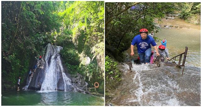 第二天上午,我們先去游玩古東森林瀑布,它是由地下涌泉形成的因鈣化可以長(cháng)高的多級串聯(lián)瀑布,也是一個(gè)可以攀爬的瀑布。瀑布從高崖飛落而下,形成一道水簾,仿佛一張素潔的錦緞,等待心靈手巧的姑娘去編織美麗的圖案。大家紛紛換上草鞋和頭盔,迫不及待地與瀑布親密接觸,與水花親熱擁抱。泉水清澈見(jiàn)底,空氣清新,儼然一個(gè)天然的氧吧,讓人神清氣爽。