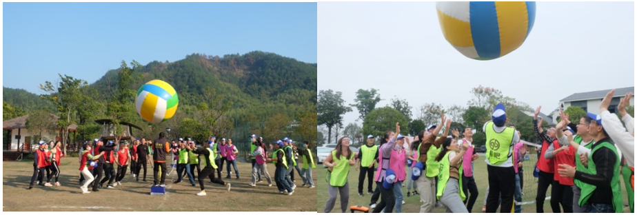 活動(dòng)項目三:『超級排球』——組團PK,團隊協(xié)作。這是一個(gè)體力與腦力活動(dòng)相結合、個(gè)人挑戰和團隊合作相結合的過(guò)程。培養團隊決策與統籌意識,大團隊意識以及團隊間的相互合作,在執行過(guò)程中對目標偏離時(shí),怎樣快速溝通重新調整計劃。
