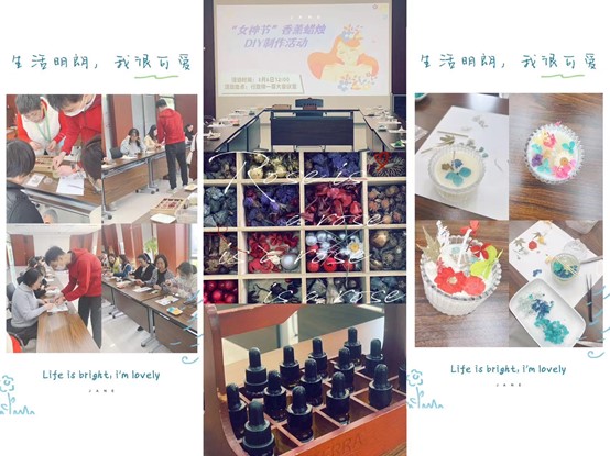 在追求個(gè)性、時(shí)尚、獨特的今天,讓姐妹們在這個(gè)特殊的日子里,自己DIY制作具有個(gè)性化的香薰蠟燭有著(zhù)獨特的意義?;顒?dòng)現場(chǎng),指導老師用生動(dòng)的語(yǔ)言,為姐妹們講解如何燃燒豆蠟、添加精油、倒入模具、裝飾干花等一系列的操作步驟。制作過(guò)程中大家虛心請教,互相幫助出點(diǎn)子、挑花色,配合協(xié)作,經(jīng)過(guò)大家精心制作,大家凝香成蠟、繞花成畫(huà),轉眼之間,色彩美輪美奐,一個(gè)個(gè)造型別致、散發(fā)出怡人清香的香薰蠟燭展現在大家面前。