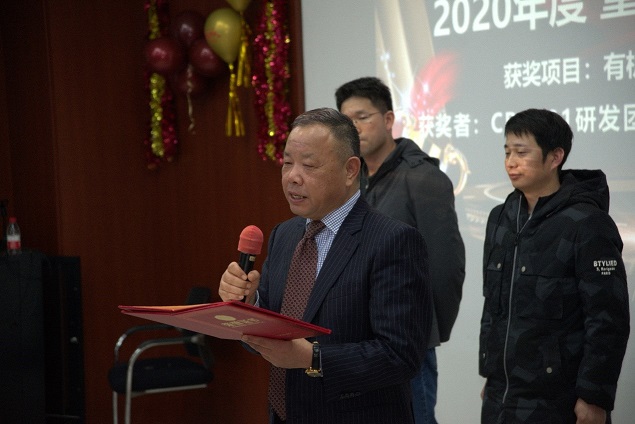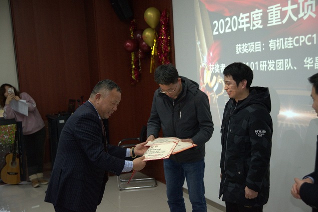 表彰會(huì )上,創(chuàng )始人、董事長(cháng)楊建華博士對重大項目獎取得的成績(jì)予以肯定,并賦予厚望。楊博士表示,康鵬在2021年起的以后幾年里,將繼續以高端化學(xué)品中的材料化學(xué)品和含氟化學(xué)品為發(fā)展方向,我們長(cháng)期發(fā)展的液晶材料和近幾年新發(fā)展的OLED材料,鋰電池材料和有機硅材料目前在各自的細分領(lǐng)域里都占有重要的地位!楊博士鼓勵大家充分發(fā)揮自主性、不斷挖掘潛力,期待有更多像有機硅CPC101一樣的項目脫穎而出!